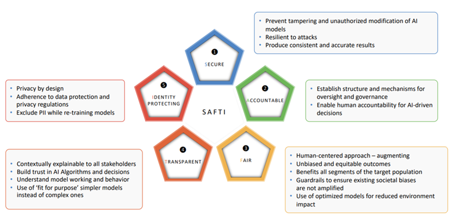 A responsible AI framework built around five core tenets—secure, accountable, fair, transparent, and identity protecting—can help enterprises safely unleash the potential of AI. Such a framework can be applied across the entire AI lifecycle to accelerate and de-risk organisations’ adoption of AI at enterprise scale.